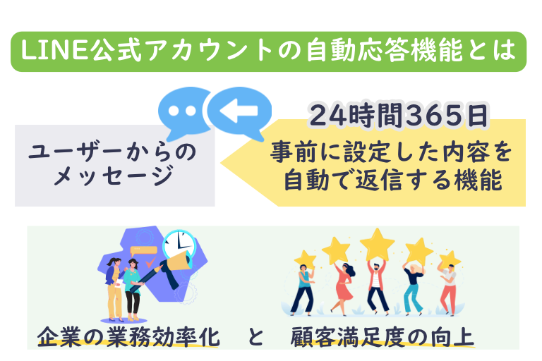 LINE公式アカウントの自動応答機能とは、ユーザーからのメッセージに対して事前に設定した内容を自動で返信する機能です。この機能により、24時間365日いつでも即座に顧客対応が可能になり、企業の業務効率化と顧客満足度の向上を同時に実現できます。