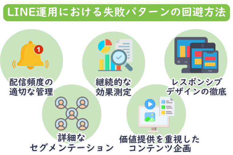 これらの失敗を回避するためには、配信頻度の適切な管理、価値提供を重視したコンテンツ企画、レスポンシブデザインの徹底、詳細なセグメンテーション、継続的な効果測定が重要です。