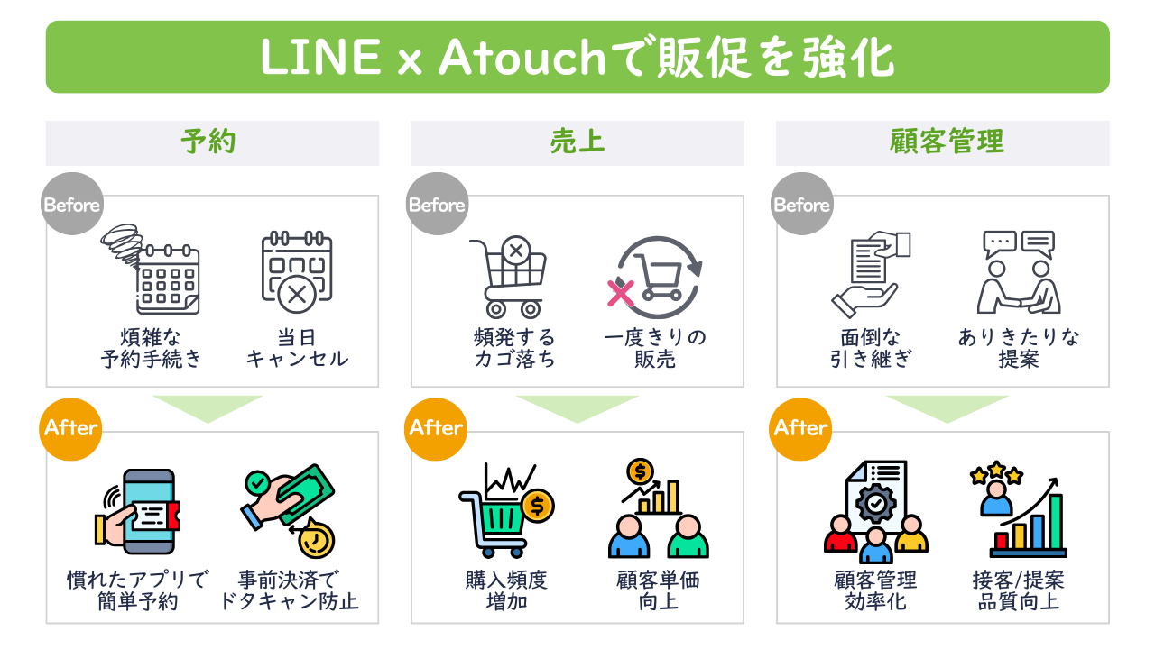 Atouch活用で予約・販売・顧客管理のすべてをLINEで完結できる