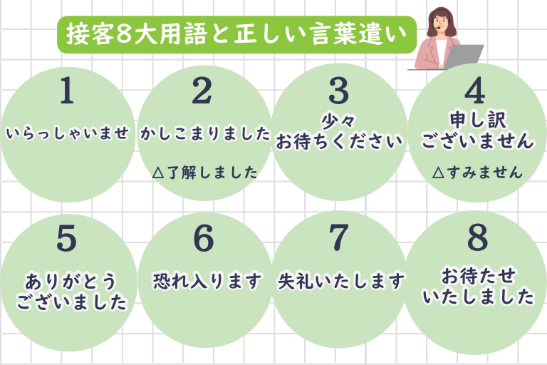 接客8大用語と正しい言葉遣い