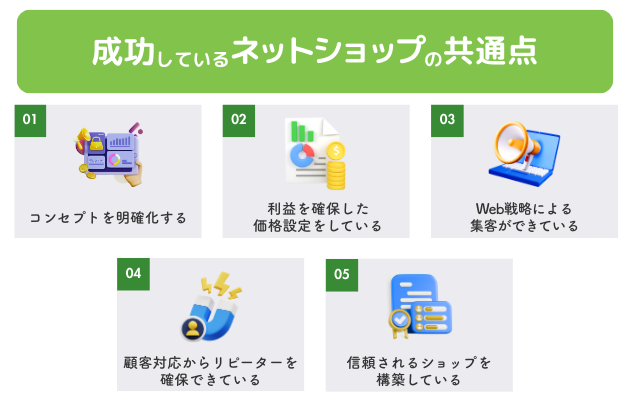 成功しているネットショップには、共通する5つのポイントがあります。
